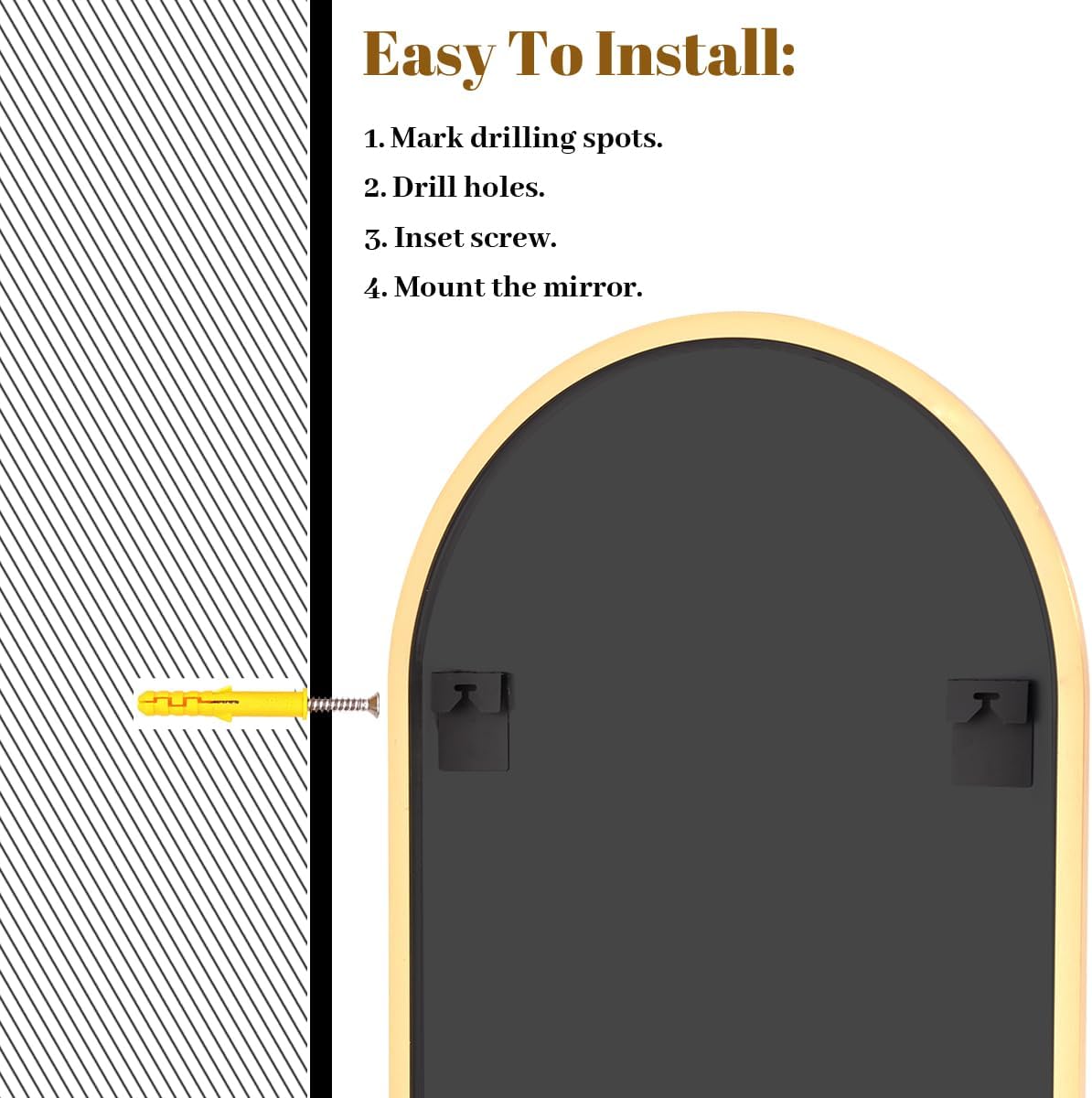 Introducing the exquisite Arched Wall Mirror, a stunning addition to elevate the aesthetic of any space in your home. Measuring 24 x 36 inches, this arch bathroom mirror is designed to impress with its elegant arch metal frame in a luxurious gold finish.
