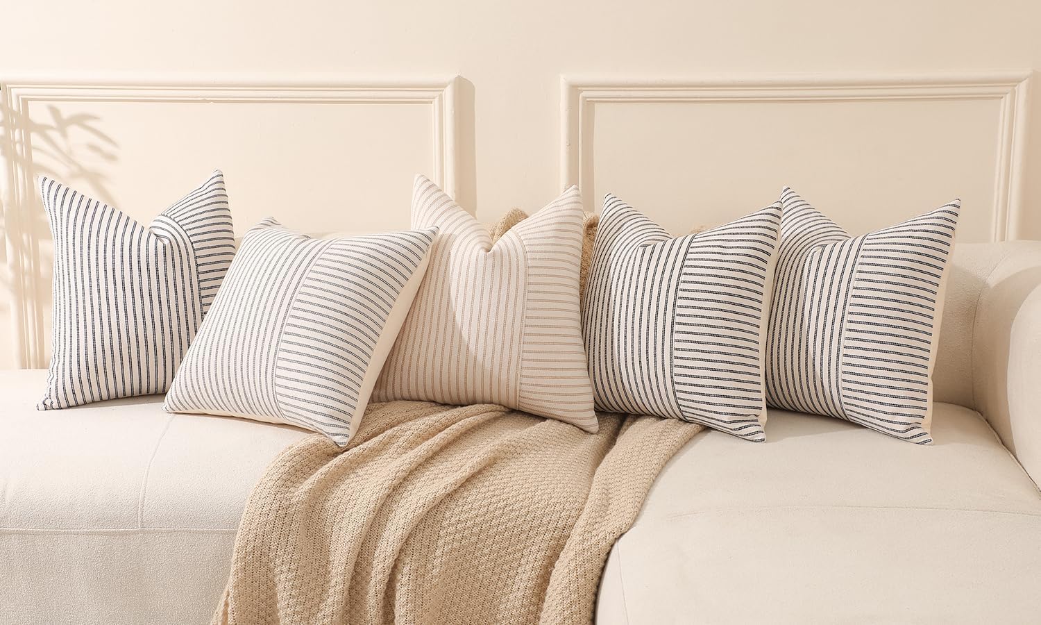 Introducing the Hckot Grey and Beige Patchwork Farmhouse Throw Pillow Covers, a perfect blend of style and comfort for your home decor needs. Elevate the look of your living space with these chic and modern decorative pillow covers that will instantly add a touch of sophistication to any room.
