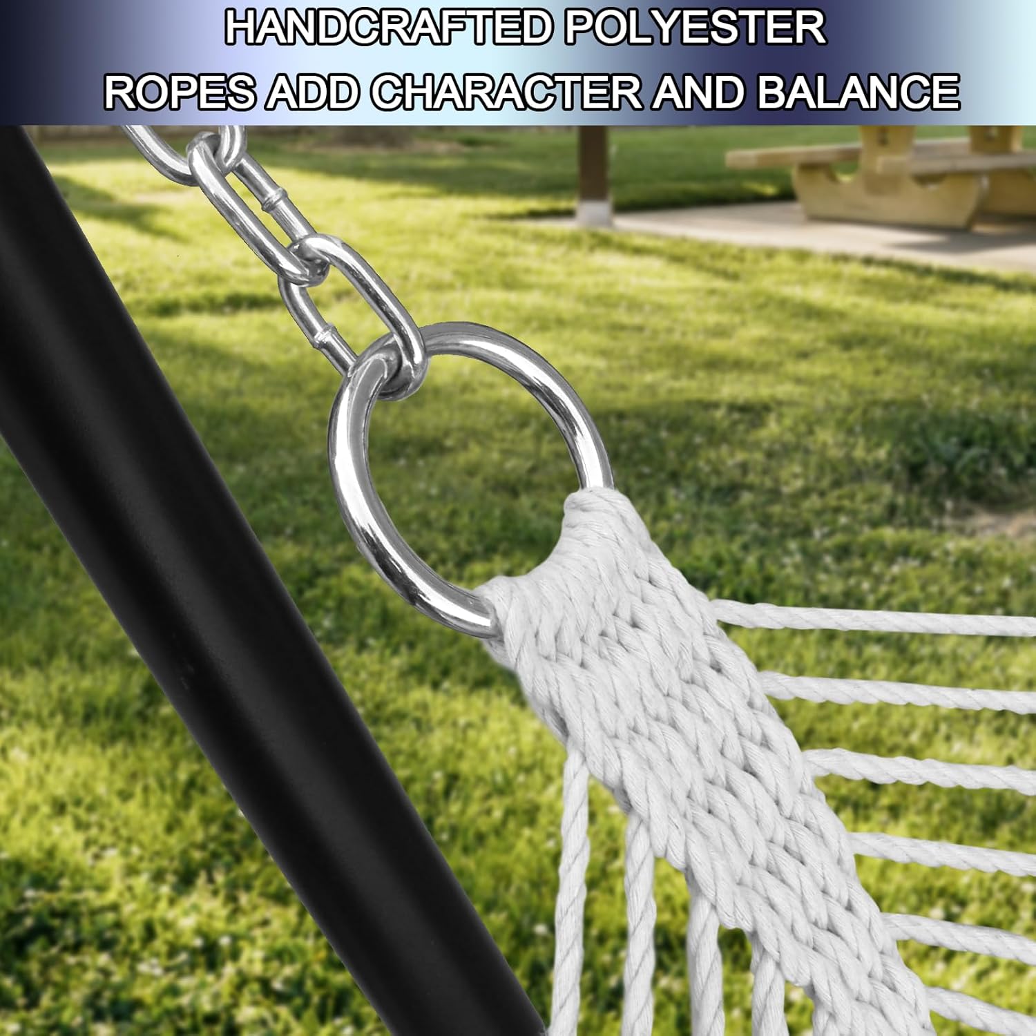 The detachable pillow adds an extra touch of luxury, allowing you to rest your head and neck in comfort while you soak up the sun or stargaze in the evening. The included chains make it easy to hang the hammock securely between two trees or on a hammock stand, so you can start enjoying your outdoor retreat in no time.