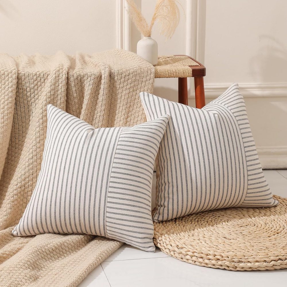 Introducing the Hckot Grey and Beige Patchwork Farmhouse Throw Pillow Covers, a perfect blend of style and comfort for your home decor needs. Elevate the look of your living space with these chic and modern decorative pillow covers that will instantly add a touch of sophistication to any room. Made from high-quality striped linen material,…